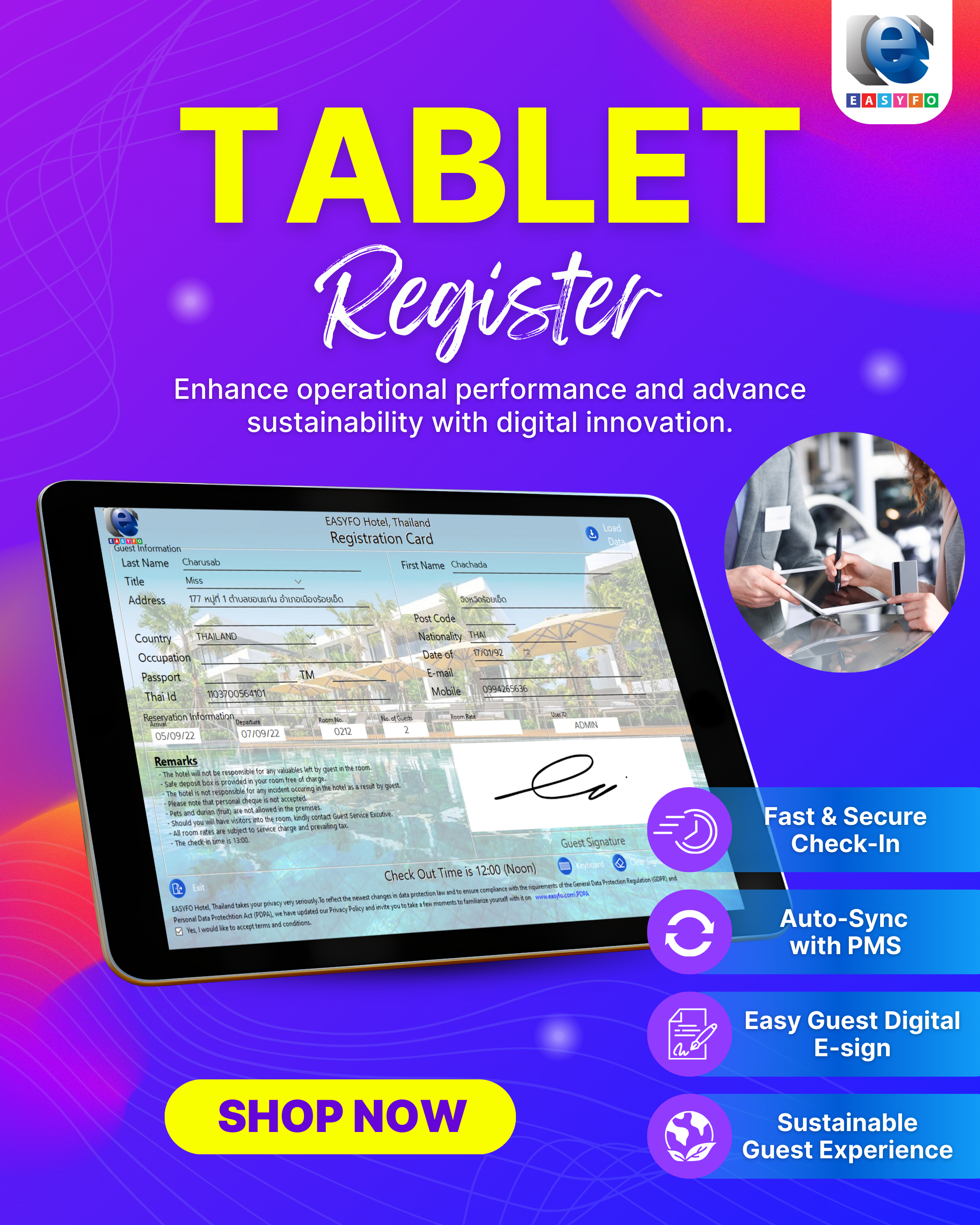 Easy Guest Digital E-sign - Streamlines check-in with secure electronic signature support. ใ