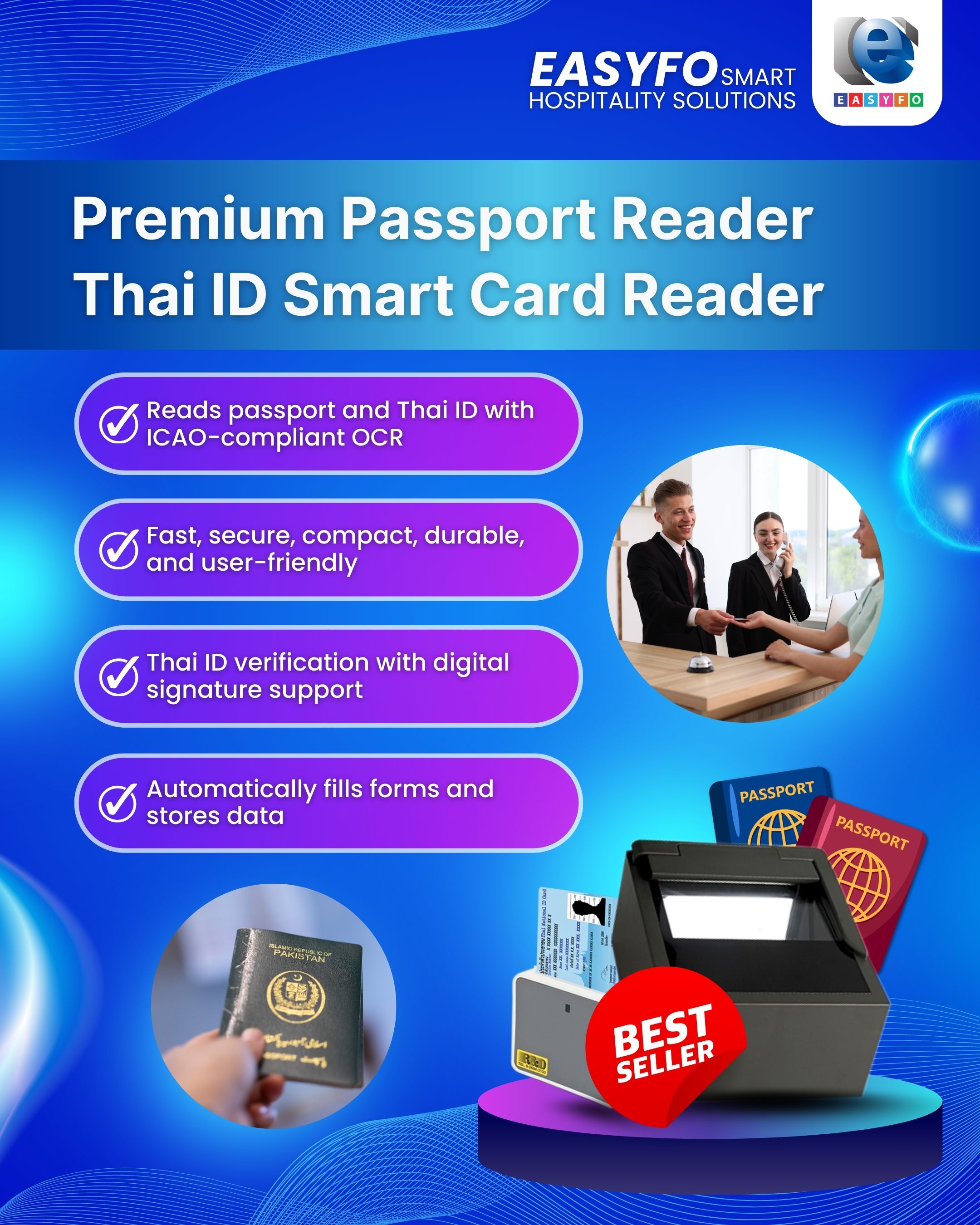๐ฏPassport and Thai ID Readers are highly beneficial tools for hotels, offering a streamlined, faster, and more secure check-in process by integrating directly with a hotel's Property Management System (PMS).