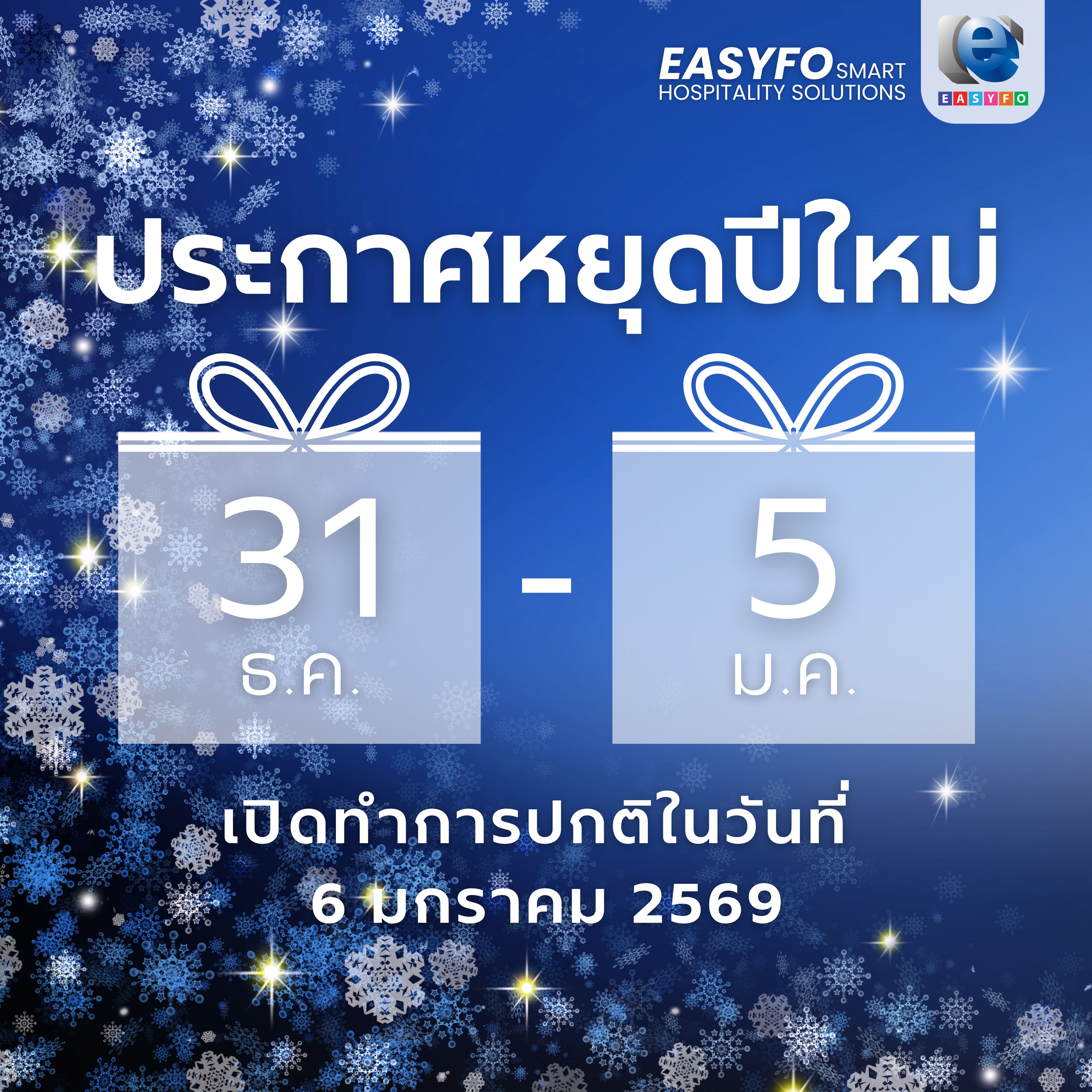 เปิดทำการปกติในวันที่ 6 ม.ค. 69 ---------------- EASYFO Office will be closed for the New Year holidays. Closed: December 31, 2025 - January 5, 2026 Reopen : January 6, 2026 ---------------- กรณีเร่งด่วน กรุณาติดต่อ For any urgent matters, Please contact Call center : +66 2 530 3131 Line Official : @easyfo Email : support@easyfo.com