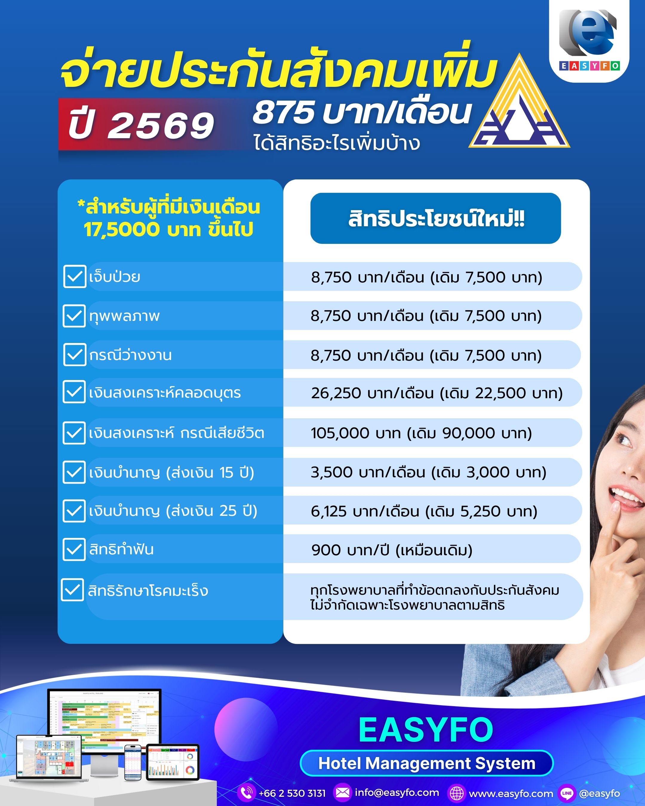 สรุป! ประกันสังคมปี 69 จ่ายเพิ่มจาก 750 บาท เป็น 875 บาท เริ่ม 1 มกราคม 2569 เป็นต้นไป
