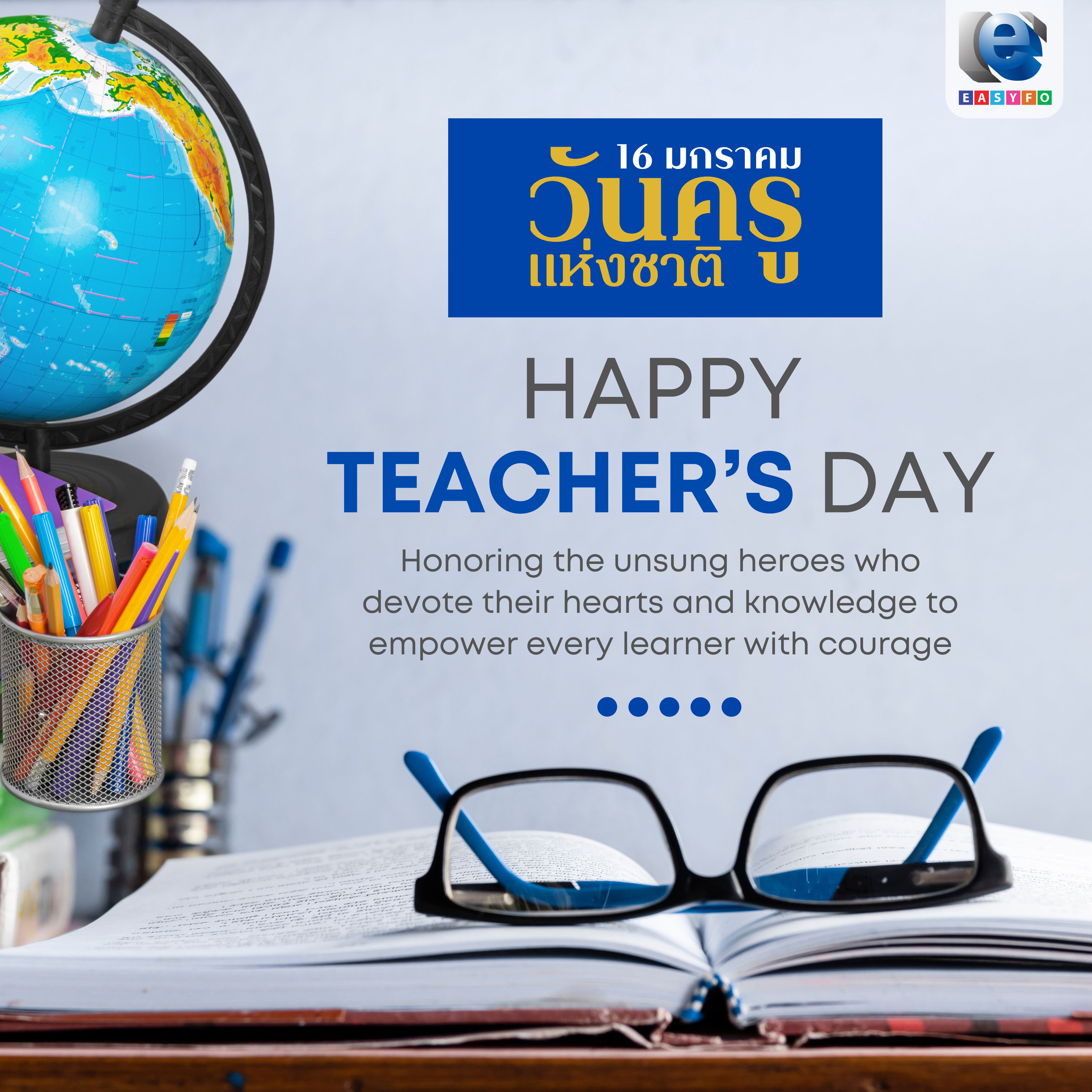 วันแห่งการยกย่องครู ผู้จุดประกายความรู้ หล่อหลอมคุณธรรม และสร้างคนคุณภาพให้สังคม ครูไม่เพียงสอนหนังสือ แต่เป็นผู้นำทางชีวิต วางรากฐานสำคัญสู่อนาคตของประเทศอย่างยั่งยืน